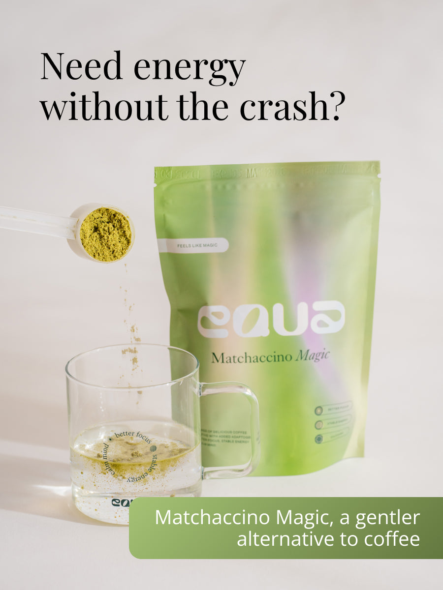 After many different blends and combinations, I found the perfect blend of Ashwagandha, Lion's Mane and Matcha that gave me the energy and focus I needed without the jitters or anxiety that came with caffeine. I switched my afternoon coffee to Matcha and began incorporating it into my daily routine. The effects were transformative.