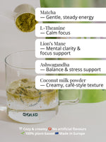 Unit price perMatcha latte drink with adaptogens for steady energy - a perfectly balanced creamy coffee alternative with gentle vanilla and coconut taste.